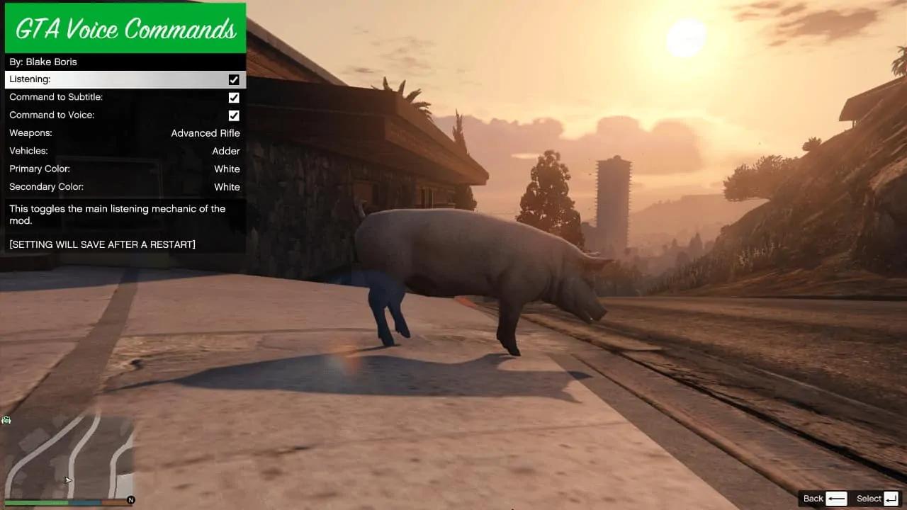 For the mod to work, you'll need the latest version of ScriptHookV, and the complementary ScriptHookVDotNet as well as NativeUI. If you've got these three set up properly, all you need to is install the mod and you're good to go. A full list of voice commands can be found in the readme file. The commands range from regular interactions all the way to activating the various cheats the game is famous for, as well as a few new ones added in the mod.