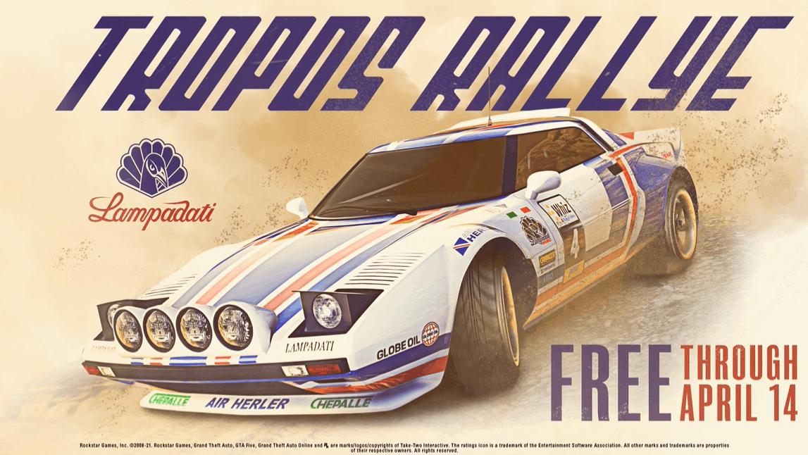 All players logging into GTA Online this week can claim a free Lampadati Tropos Rallye directly from Southern San Andreas Super Autos. Based on the Lancia Stratos, this classic ride has a place in the garage of every car collector worth their salt — or Transformers fan. We call ours Wheeljack. Speaking of free stuff, you can also get a full set of free Gold, Silver, Pink and Black Jock Cranley Suits, also for the low, low price of simply logging in.