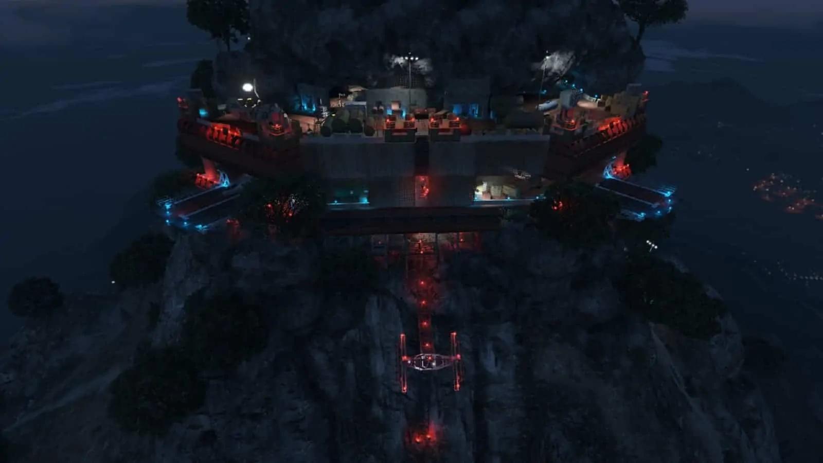 In what just might be the most visually compelling modification for GTA V yet, Sanghelios has created a map modification for the game which places a massive, three story military facility at the peak of Mount Chiliad, the highest mountain and overall highest point in all of GTA V.